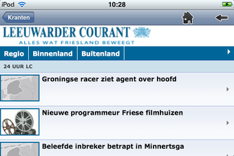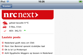 Kranten opent de mobiele websites van een geselecteerd aantal kranten. Deze digitale kranten lees je vervolgens in portret- (verticaal) of landschapsmodus (horizontaal). De informatie is dus niet nieuw of bewerkt, maar afkomstig van het internet. Deze applicatie verzamelt de artikelen op handige wijze.