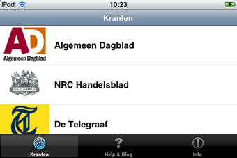 De informatie uit Kranten mag dan van het internet komen, het is prima verzameld en mooi weergeven in één programma. Gebruik je bijvoorbeeld de Telegraaf applicatie, dan doet Kranten er nog even 61 dagbladen bij. Fervente nieuwslezers bedenken zich niet en zetten deze mediabeheerder razendsnel op hun iPhone of iPod touch.